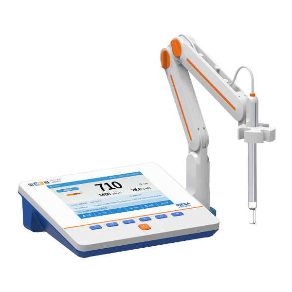该电导率仪配备6英寸高清液晶屏,支持自动关机、断电保护及恢复出厂设置,具备IP54防护等级。内置智能检测功能,可自动识别终点并支持连续与平衡读数,兼容多种电导标准溶液,提供自动/手动温度补偿及自动频率切换。支持1点电导电极标定,具备数据存储(50套)、查阅与删除功能,符合多项国家及行业标准。主要特点6英寸高清液晶屏,按键操作支持自动关机、断电保护和恢复出厂设置等功能支持IP54防护等级标配复合电导电极、电极支架和防尘罩智能检测,自动识别智能判别终点,支持连续读数和平衡读数支持自动/手动温度补偿自动识别GB 111.3mS/cm、12.85mS/cm、1408μS/cm和146.5μS/cm四种电导标准溶液,支持1点电导电极标定支持自动频率切换数据管理支持数据存储(50套)、查阅和删除参考标准JB/T 9366-2017 实验室电导率仪GB/T 11007-2008 电导率仪试验方法JJG 376-2007 电导率仪HJ 1396-2024 水质 水温的测定 传感器法