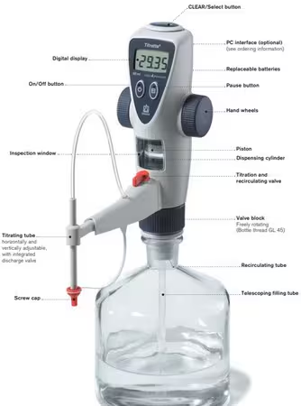 - 防滑手轮和平稳运行的精密齿轮设计,可快速进行滴定,使滴定操作可靠、简单。