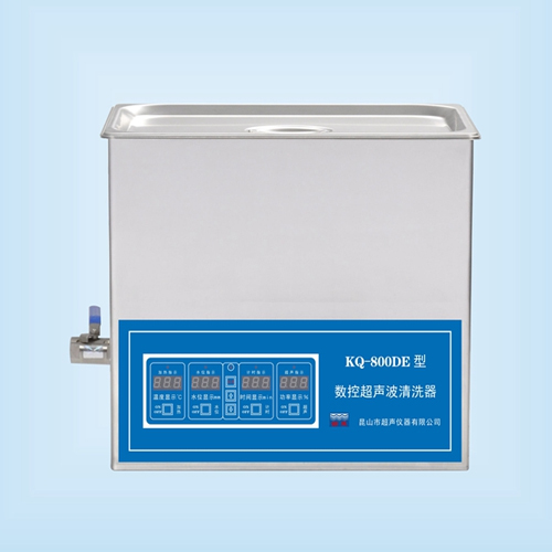 昆山舒美KQ-800DE性能及特点:清洗机采用单片机软件操作清洗机降音盖、清洗槽均采用优质不锈钢数显超温度、超电压、超电流、低水位、无溶液保护指示数显记忆、设定显示超声工作时间、超声功率、进液液位(及实际液位)、加热温度(及实际温度)清洗机电路具有自动扫频功能,能产生连续脉冲射流,使清洗效果更明显,工作更稳定清洗机电路及器件升级并匹配,电功转换率高、无功损耗低可选单种超声频率有20KHz、25KHz、28KHz、33KHz、40KHz(多选一,标配40KHz)