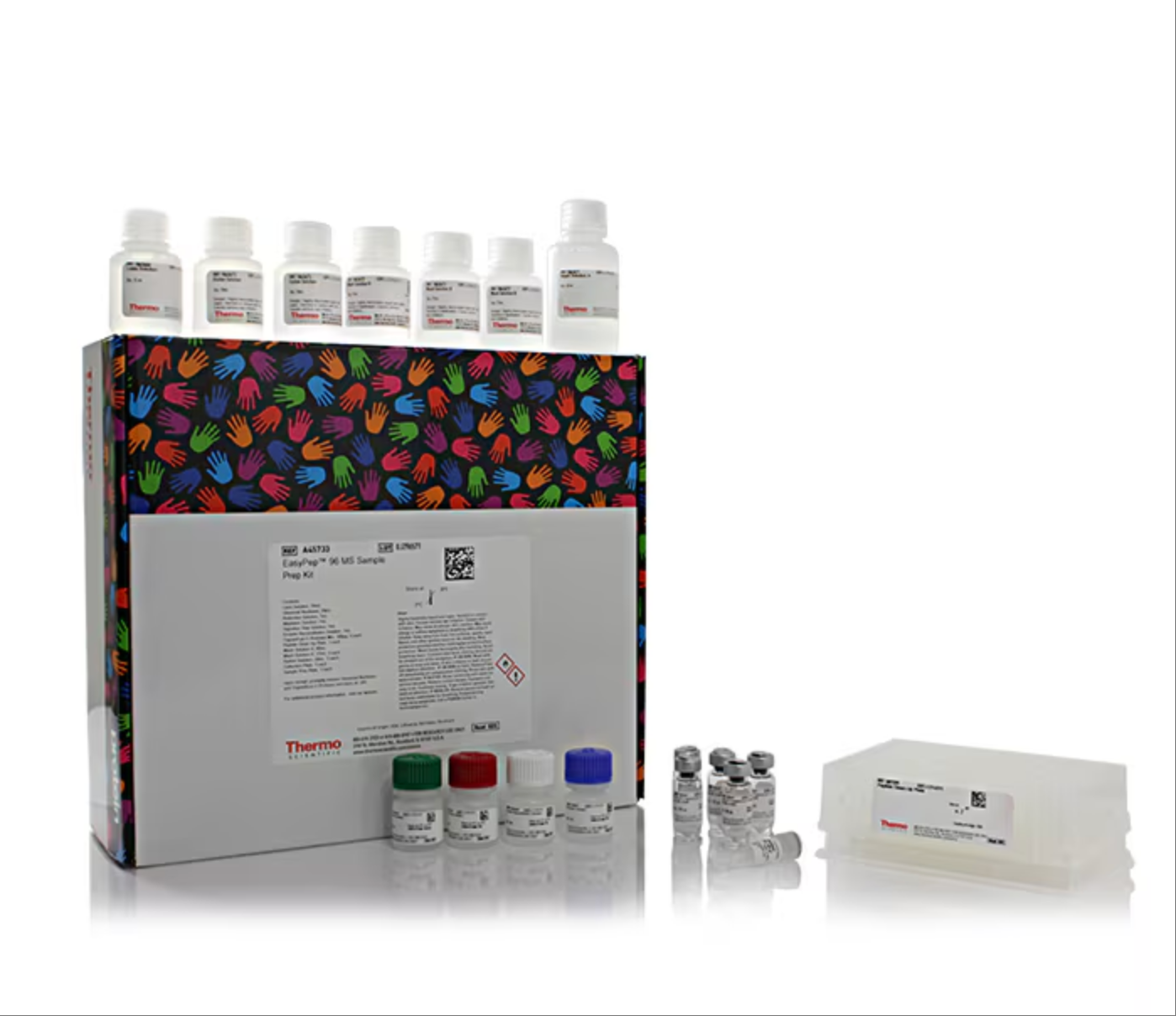 EasyPep Mini MS 样品制备试剂盒可对培养的哺乳动物细胞和组织进行高效、可重现的处理以便进行蛋白组学 MS 分析。该试剂盒包含预配制的缓冲液、MS 级酶混合物、肽纯化柱和优化的方案,可在 3 小时内生成质谱兼容肽样品。试剂盒经过优化,可处理 10–100 μg 的蛋白样品,产生大量的 MS 即用型肽。