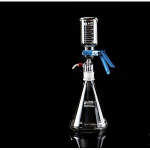 应用:主要应用于水相、有机相及腐蚀性液体的过滤,用于特定污染物的分析,特别推荐用于HPLC流动相的过滤,有一定的脱气作用,以保证流动相的洁净、防止HPLC液路的堵塞。也可用于无菌试验,培养除菌过滤,热敏物的除菌过滤。特点:1.采用优质高硼硅玻璃原料,硬度高,耐高温耐压性能好。2.玻璃透光率高,耐急冷急热性能好。3.可接受高温消毒灭菌等多种形式符合ISO8199标准的灭菌。4.本品流量快,精密国际磨口尺寸符合国际标准,能与国外多种品牌产品互配。组成:溶剂过滤系统由溶剂过滤器加隔膜真空泵组成。其中溶剂过滤器包括:1.三角集液瓶2.滤头3.PTFE筛板4.滤杯5.固定夹6.防尘盖7.胶管8.胶管连接器