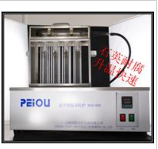 1. 石英结构加热原理远红外石英加热元件采用我厂自己生产的珠光乳白石英管配用电热材料,使原件具有优良可靠的远红外辐射特性,通电后,热材料发出的红外光与可见光中97%被乳白管所阻挡吸收使管壁温度升高产生硅氧键分子振动辐射远红外线,这样使97%可见光和近红外光可转为远红外辐射。克服了单纯使用透明石英玻璃带来的透过可见和近红外的弊端,从而有效地使电能转化为远红外线。2. 红外智能8孔自动消化炉特点远红外石英加热元件是以乳白石英管为红外辐射源, 没有涂层,没有污染,没有有害辐射,化学稳定性好,耐高 温, 形状多样,长久使用不变形,热稳定性好,加热温度可行选择。 长期使用辐射性能不退变。并且使用寿命长,结构合理,热惯性极小,使用方便。红外智能8孔自动消化炉快速、 一致、 **一、红外智能8孔消化炉概述:SKD-08S红外智能8孔消化炉可用于农业、林业、环保、地质、化工、食品等部门以及高等院校、科研部门对植株、种子、饲料、食品、土壤、矿石等消化二、红外智能8孔消化炉技术指标:型号 SKD-08S ( SKD-08S2)控制方式 数控 (定时+60阶程序升温)加热方式 红外石英加热管炉孔数量 8孔控温范围 室温-680℃升温速度 10分钟(400℃预热)温度波动 ±1% 度电 压 AC220V功 率 1600W四、红外智能8孔消化炉特点:1、 加热体(模块)采用红外石英管,耐强酸强碱、防爆裂,寿命长,符合CE标准2、 炉孔温度连续可调,升温速度快,使用范围广3、 消化管受热面积大、温差小,样品消化一致性好,热效率高,有利于样品的消煮4、 仪器具有过流保护和漏电保护5、 采用双开关,电源和加热单独控制,便于**参数设置,节约能源。6、 采用新一代数显控温仪,PID智能控制技术,控温精度高,简单易学7、 仪器有不锈钢排污罩,使消化管内逸出的SO2等有害气体,通过排污管经抽吸泵从水中排入下水道,有效地抑制有害气体的外逸消化炉热传导介质对消化质量的影响消化炉在实验室里是一个耗能大户,且又决定了定氮的质量,一个铝锭或石墨20孔的消化炉功率一般都在3500W左右,(沛欧石英辐射消化炉功率2200W)且工作一般都在二个小时以上。如何降低耗能而又满足消化的要**选择消化炉的要考虑的。目前国内市场上供应的消化炉加热均通过电加热,而热传导通过介质到消化管,所以不同的介质对消化炉的品质和能耗有直接关系,在此讨论不同的介质特性,(假设消化炉保温性都是良好的)。1 铝锭为介质优点:铝锭热传导较快(导热系数可达237W/mK),导热系数高使得样品间温差较小。如果有足够体积的铝锭,就能保障样品温度的稳定性减小温度波动,且即便和硫酸接触便生成密致的硫酸铝层,不会深入铝锭内部,所以铝锭也是很好的防腐的选择。缺点:铝锭是通过热的接触传导,要温度恒定必须有足够大的体积(薄薄一片铝锭效果较差)电加热产生的可见光和近红外光都没有利用,所以热能利用效率低,能耗较高。由于铝锭的稳定性和样品间温差较小。受到市场的认可。(加热方式和铝锭的大小都会影响消化炉的质量,在此不做讨论)2 石墨为介质红外智能8孔自动消化炉优点:同体积铝锭价格是石墨的3倍,所以石墨消化炉成本低得明显。缺点:由于石墨非金属特性即热传导慢(导热系数只有129W/m.k,比铝锭237W/m.k低多了。),且石墨导热系数随温度升高而降低,更使得介质上面的消化管温度不一,温差大,容易挂壁,影响消化质量。所以石墨一般在200度以下作为传导介质尚可,毕竟有价格优势,400度以上石墨导热系数明显下降,石墨的缺点明显显现。价格优势的代价是消化质量明显下降,挂壁严重。3 红外石英辐射加热石英加热元件采用珠光乳白石英管配用电热材料,具有优良可靠的远红外辐射特性,通电后,电阻丝发出的红外光波与可见光波中97%被乳白管所阻挡吸收,使石英管壁温度升高产生硅氧键分子振动辐射出远红外光波,这样使97%可见光和近红外光可转为远红外辐射。克服了单纯使用透明石英玻璃带来的透过可见和近红外的弊端,从而有效地使电能转化为远红外光波。靠热辐射来加热样品,特点是:升温快,样品间温差小、传导极快,温控准确。一般应用于有高要求样品的消化,例:牛奶、食品、饲料、保健品等容易挂壁的样品。例如:有较快的升温和降温速度。程序升温可以根据样品的特点来选择升温曲线,有利高质量样品的消化,从而杜绝样品的挂壁现象、进而使得样品消化效率的大大提高,优点:样品间温差小,由于采用热辐射使得消化管间温差变小。温度控制性能优良:由于石英辐射热惯性小,在温控时温度超调小,能使炉温尽快达到目的温度,这是铝锭和石墨介质无法媲美的。减低能耗:由于铝锭和石墨通过接触传导,且大量的可见和近红外光不能利用,使得能量浪费,而石英辐射利用了97%的可见和近红外光波转换成远红外光波辐射,电、热能转换效率高。红外智能8孔自动消化炉由于石英化学特性稳定,即便和硫酸接触不会影响石英的功能,具有高品质的防腐性能,延长电加热丝的使用寿命。而石墨的热惯性大而使得温度超调大,那么电阻丝的表面温度和石墨温差很大,使得电阻丝寿命短,容易断。石英的一定的温度下产生辐射的特性决定了电阻丝表面温度的限定,使得消化管和电阻丝温差很小,电阻丝寿命明显延长。缺点: 由于珠光乳白石英管加工要求高,且生产成本较高,但由于使用成本很低(相比