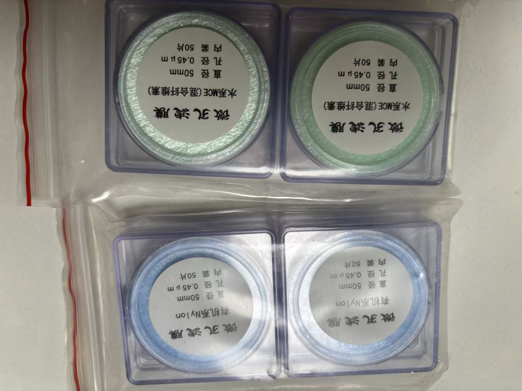 使用要求较高的场合,比如色谱样品或试剂的过滤,若是水系的,蒸馏水洗净后,再蒸馏水预过滤,若有机系过滤,先将本品在纯甲苯和95%以上的乙醇 中分别浸泡过夜,再纯甲苯和纯乙醇预过滤,洗净膜后使用。本品入水后显著变脆,入有机溶剂强度的减少则轻些。