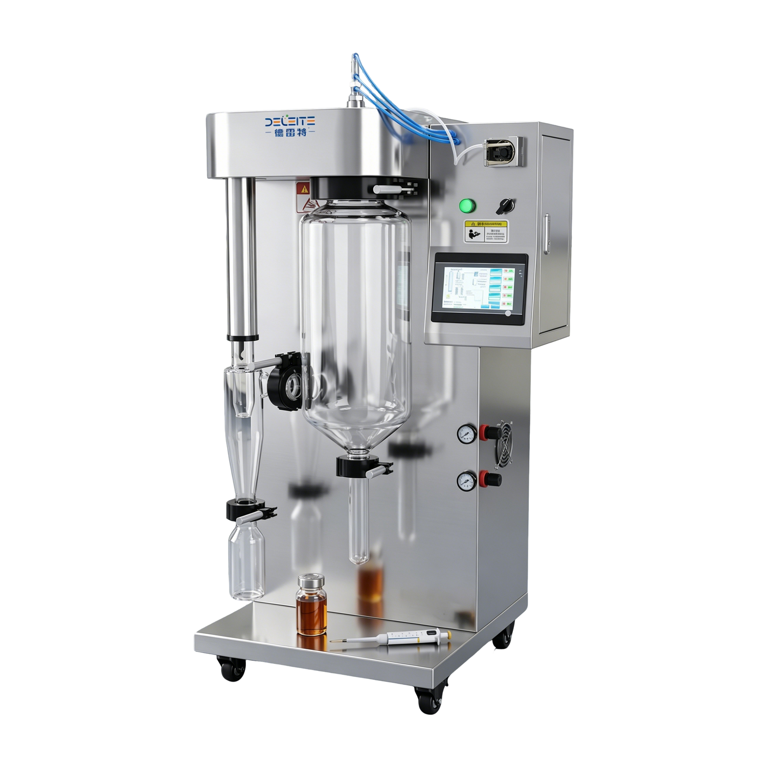 4.喷雾、烘干及收集装置采用优质透明耐高温高硼硅玻璃制造,整个喷雾干燥实验全程可视。